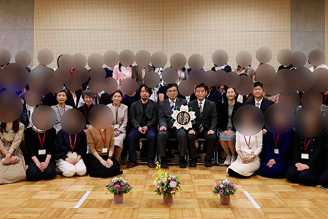 今年度のつどい 集合写真のホームページへの掲載は事前に承諾をとりませんでしたので、教職員と三役の方以外の参加者のお顔はぼかしをいれさせて頂きました。